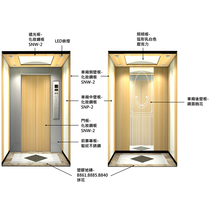 (一) 因所有設備均裝設於電梯升降路內,建築設計者得排除一切因電梯配置規劃之所有限制,不需規劃電梯機房,使建物規劃的自由度大幅提升,讓建築設計更有自由揮灑空間。