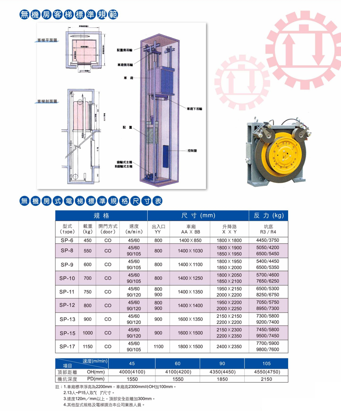 (一) 因所有設備均裝設於電梯升降路內,建築設計者得排除一切因電梯配置規劃之所有限制,不需規劃電梯機房,使建物規劃的自由度大幅提升,讓建築設計更有自由揮灑空間。